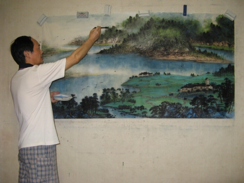曾永松在创作山水画