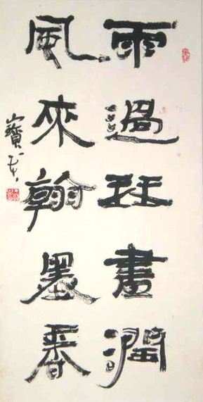 丁宝贵,当代实力派书法家。毕业于河南书法函授院。曾到到著名书法家张海、朱培尔、旭宇等指点。现为中国书法家协会河北分会会员,沧州市书法家协会会员等。 楷书由颜鲁公入手,后临习魏《张猛龙》等诸魏碑,隶书习《曹全》、《礼器》、《乙瑛》、《张迁》、《石门颂》等,行草临《王铎》、《黄道周》、《苏轼》、《米芾》等。篆书习《甲骨》、《两周...(详细介绍)