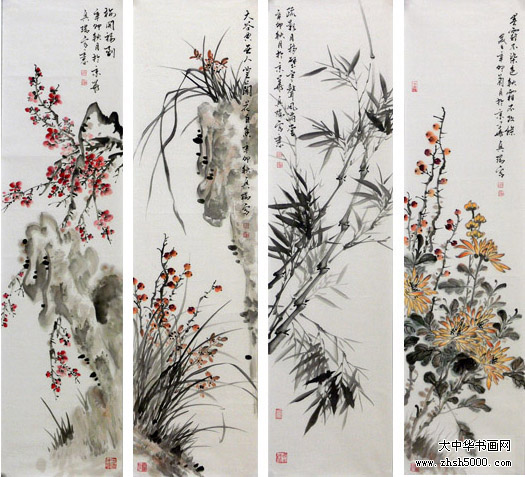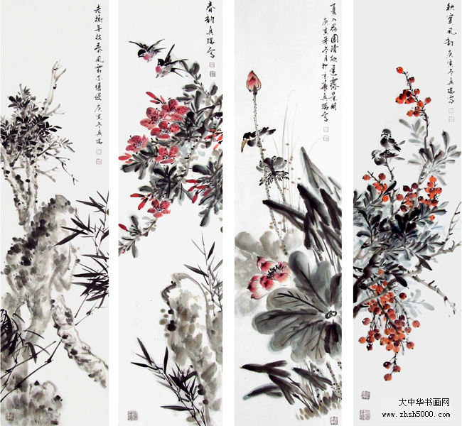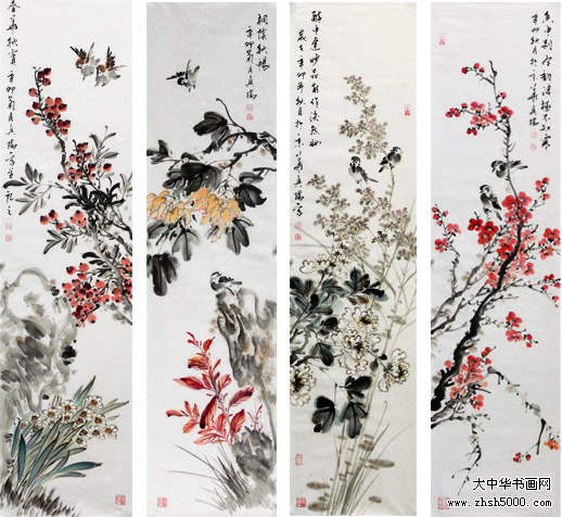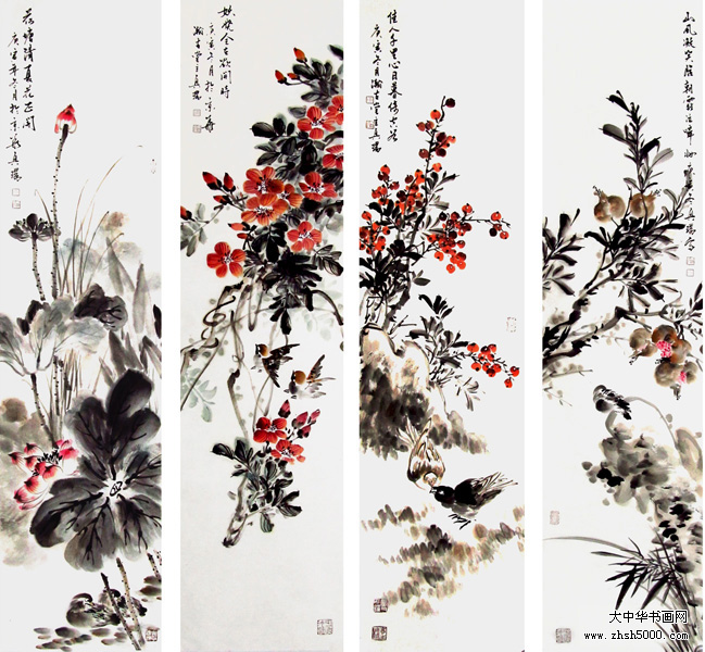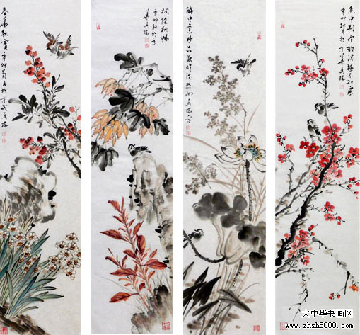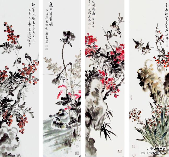 马兴瑞花鸟四屏